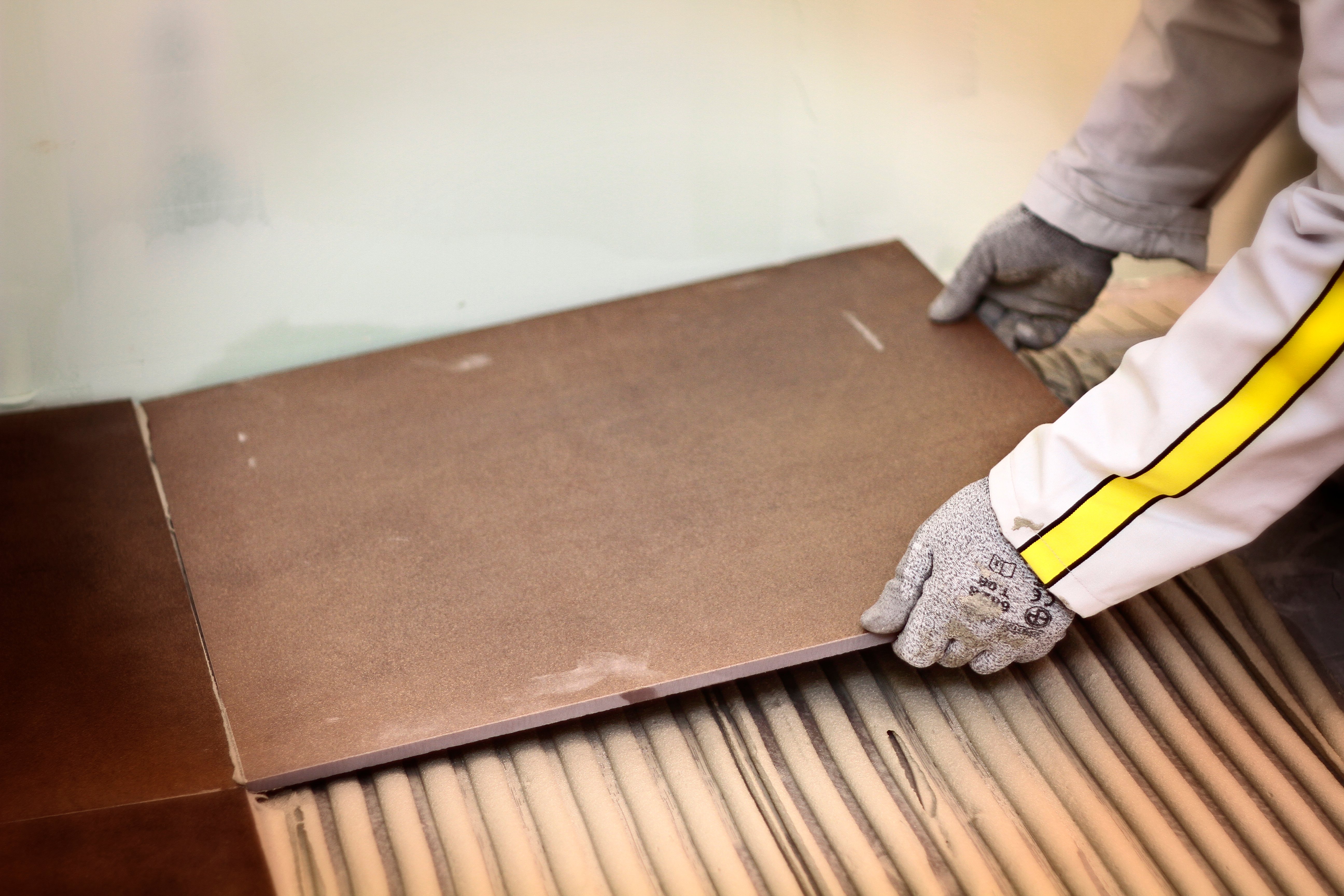 – Sử dụng bay răng cưa để trét keo giúp kiểm soát được lượng keo sử dụng. Hơn nữa sẽ giúp keo được phủ đều và kín lên bề mặt nền, giúp sự liên kết giữa gạch và nền. Keo dán gạch giúp đạt được tối ưu do toàn bộ bề mặt gạch tiếp xúc với keo dán lên bề mặt nền.