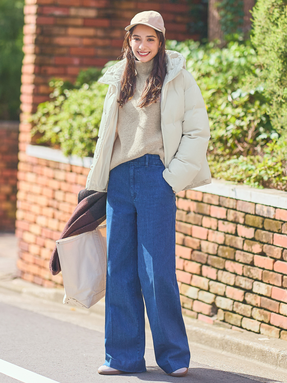 Phối đồ đi chơi Noel thời thượng với Áo Khoác Len Dáng Ngắn và quần ống suông (Nguồn: UNIQLO)